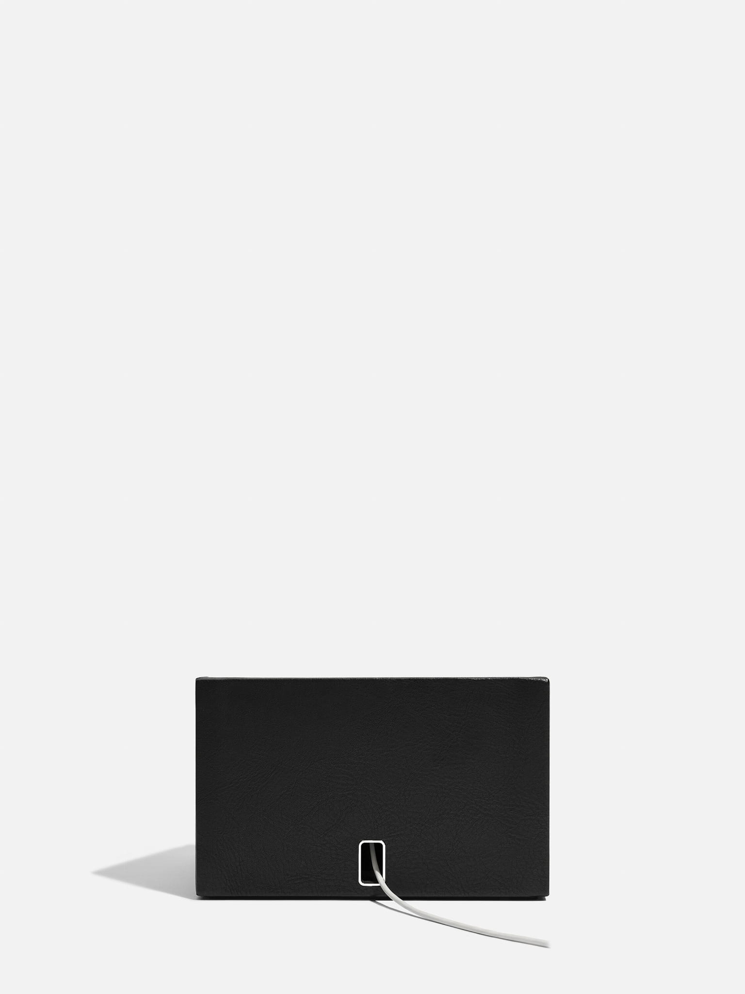 Stacja dokująca i pudełko na biżuterię Stackers zapewnia zorganizowane miejsce na telefon i zegarek. Przełóż kabel przez tylną ściankę, aby łatwo ładować urządzenia, a jednocześnie subtelnie ukryć przewód.