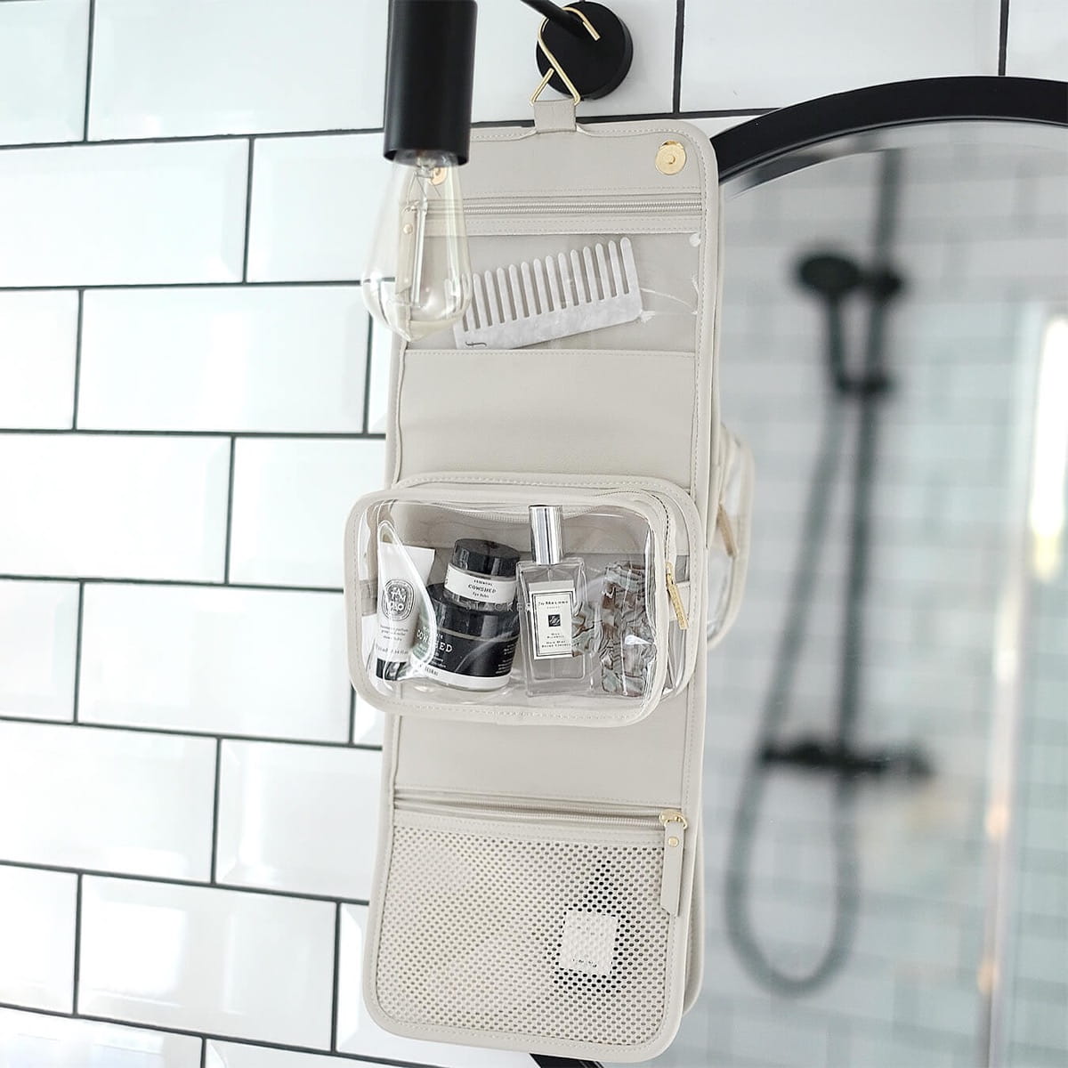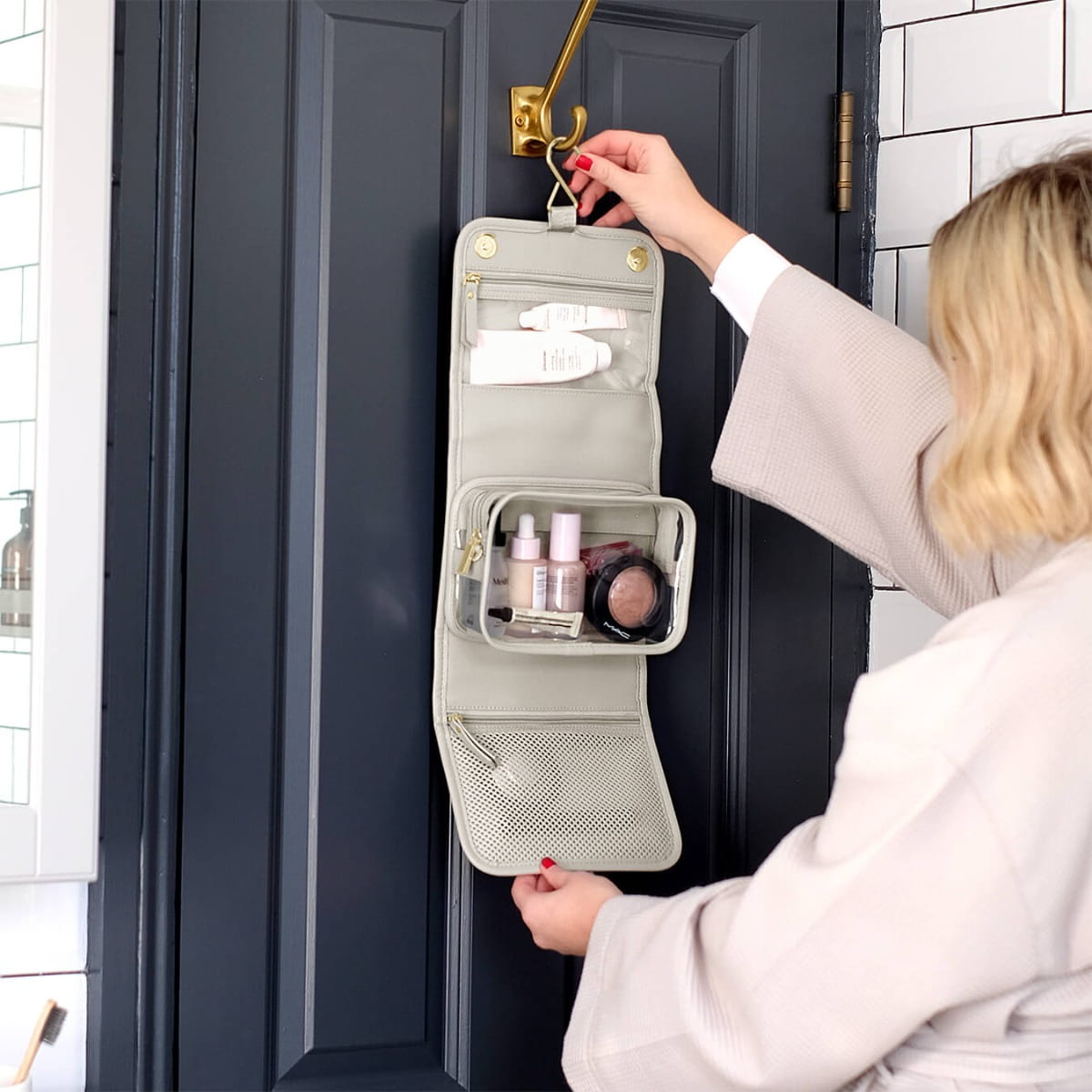 Zachowaj porządek i styl podczas krótkich wyjazdów z małą wiszącą kosmetyczką, która łączy funkcjonalność z elegancją.
