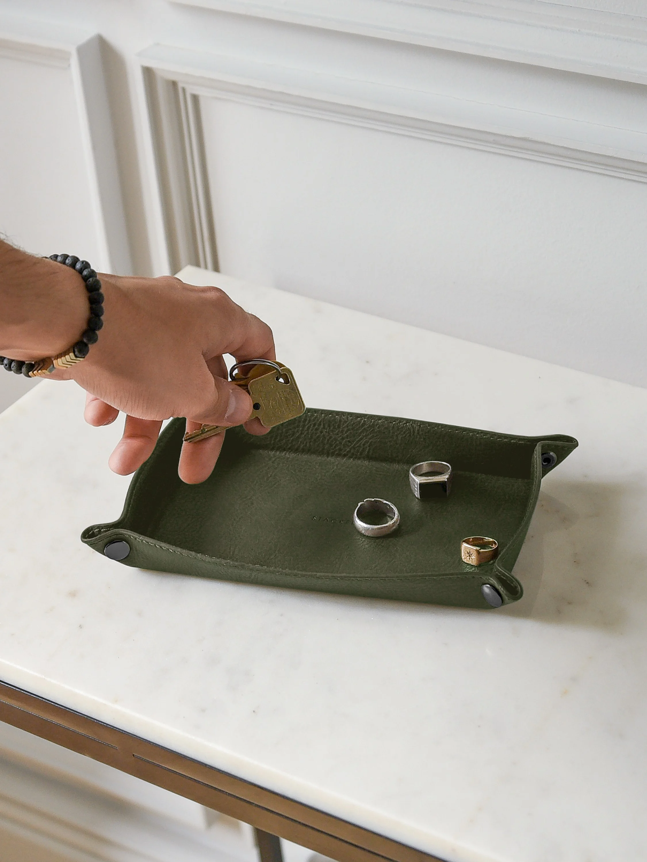 Mała skórzana podstawka na drobne rzeczy STACKERS Olive Green