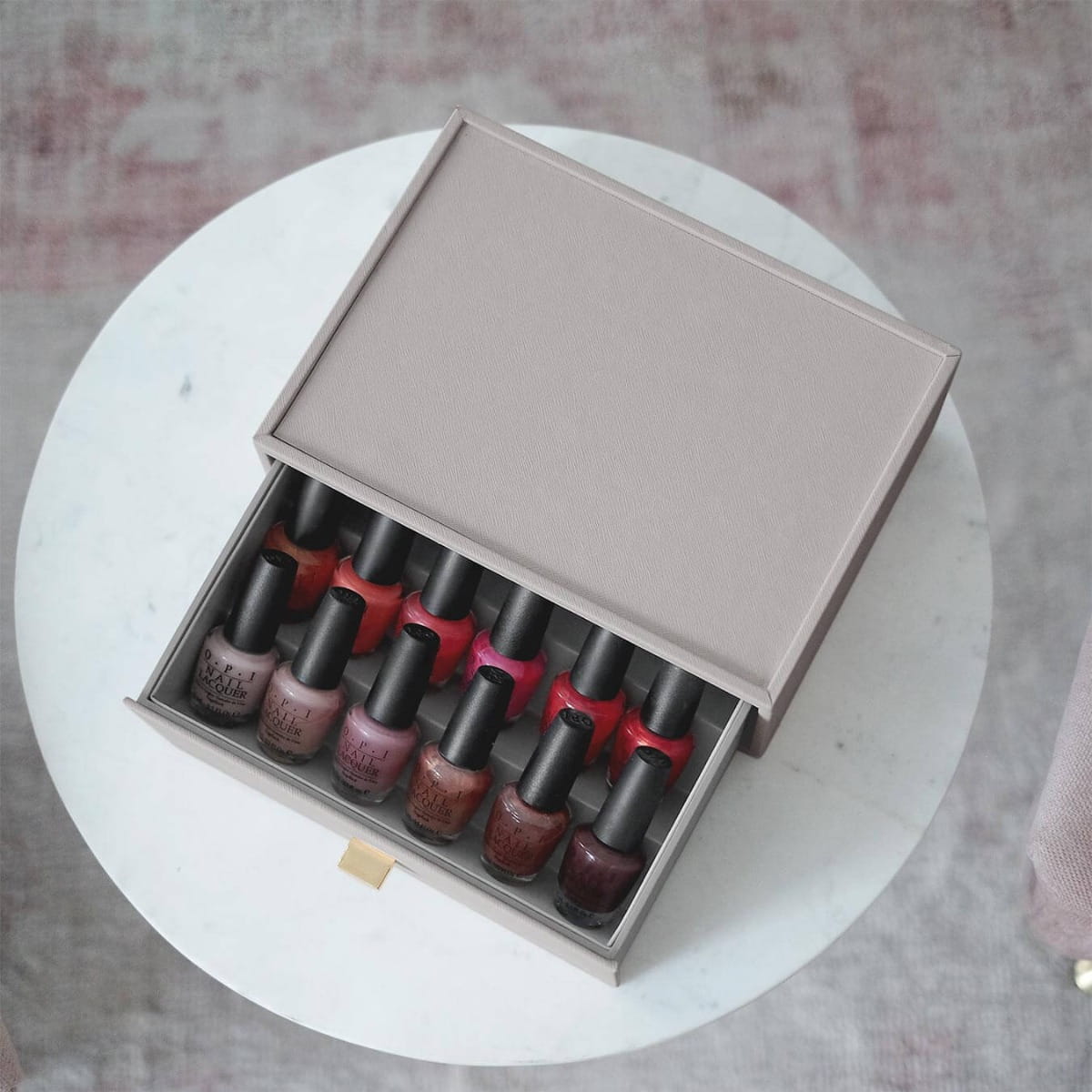 Dodaj organizer na lakiery do paznokci z szufladą do zestawu szuflad w rozmiarze Classic lub użyj jako samodzielny element. Wnętrze zostało zaprojektowane tak, aby ułatwić Ci wgląd we wszystkie kolory lakierów, z miejscem na aż 18 buteleczek, jak również na dodatkowe akcesoria, takie jak pilniki do paznokci. Dodawaj kolejne warstwy, gdy Twoja będzie się powiększać!