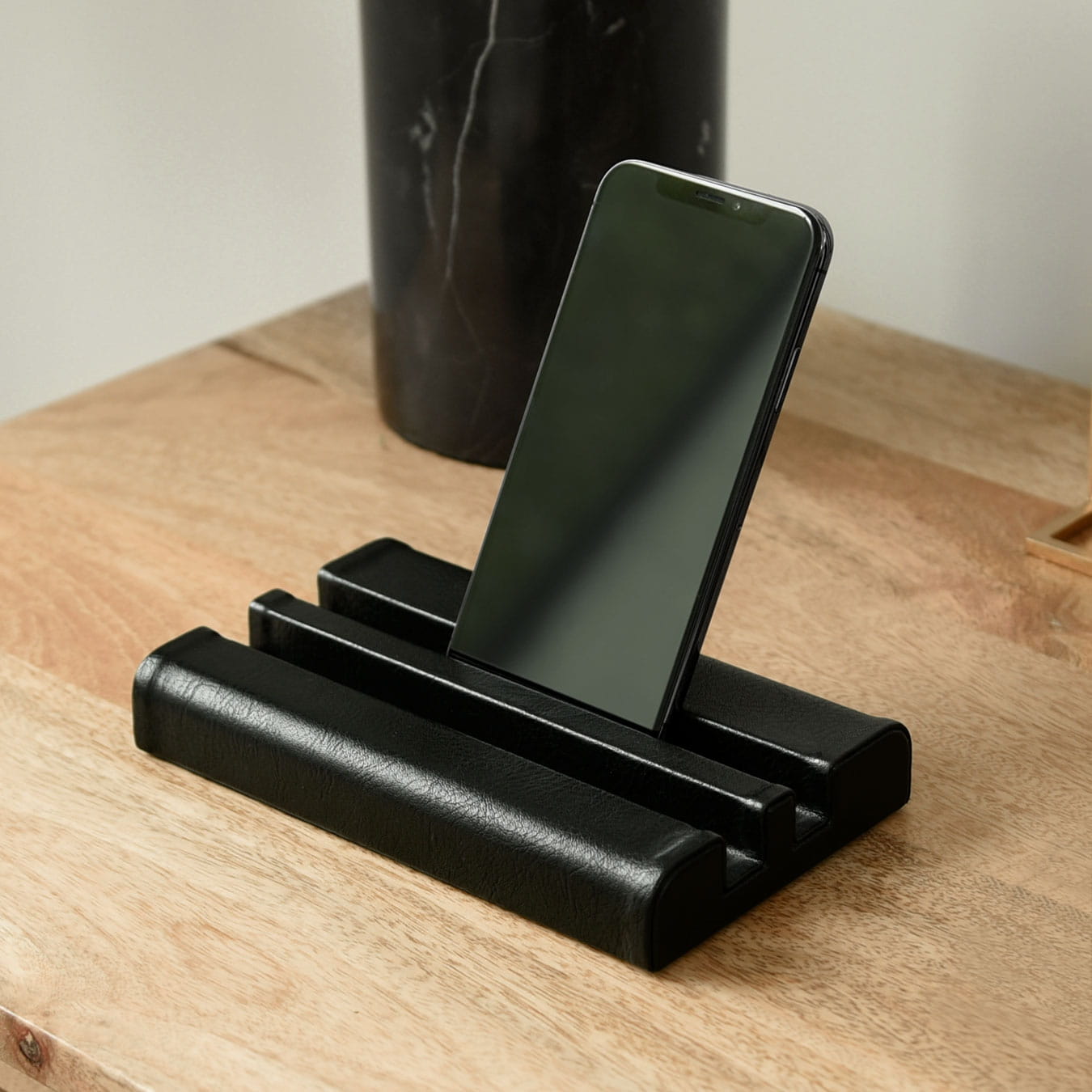 Zadbaj o bezpieczeństwo i porządek swoich urządzeń dzięki stojakowi technologicznemu Stackers ze skóry wegańskiej. Posiada dwa gniazda przeznaczone do przechowywania iPadów, Kindle i telefonów komórkowych. Idealny do domu lub biura, dodając praktyczny styl.
