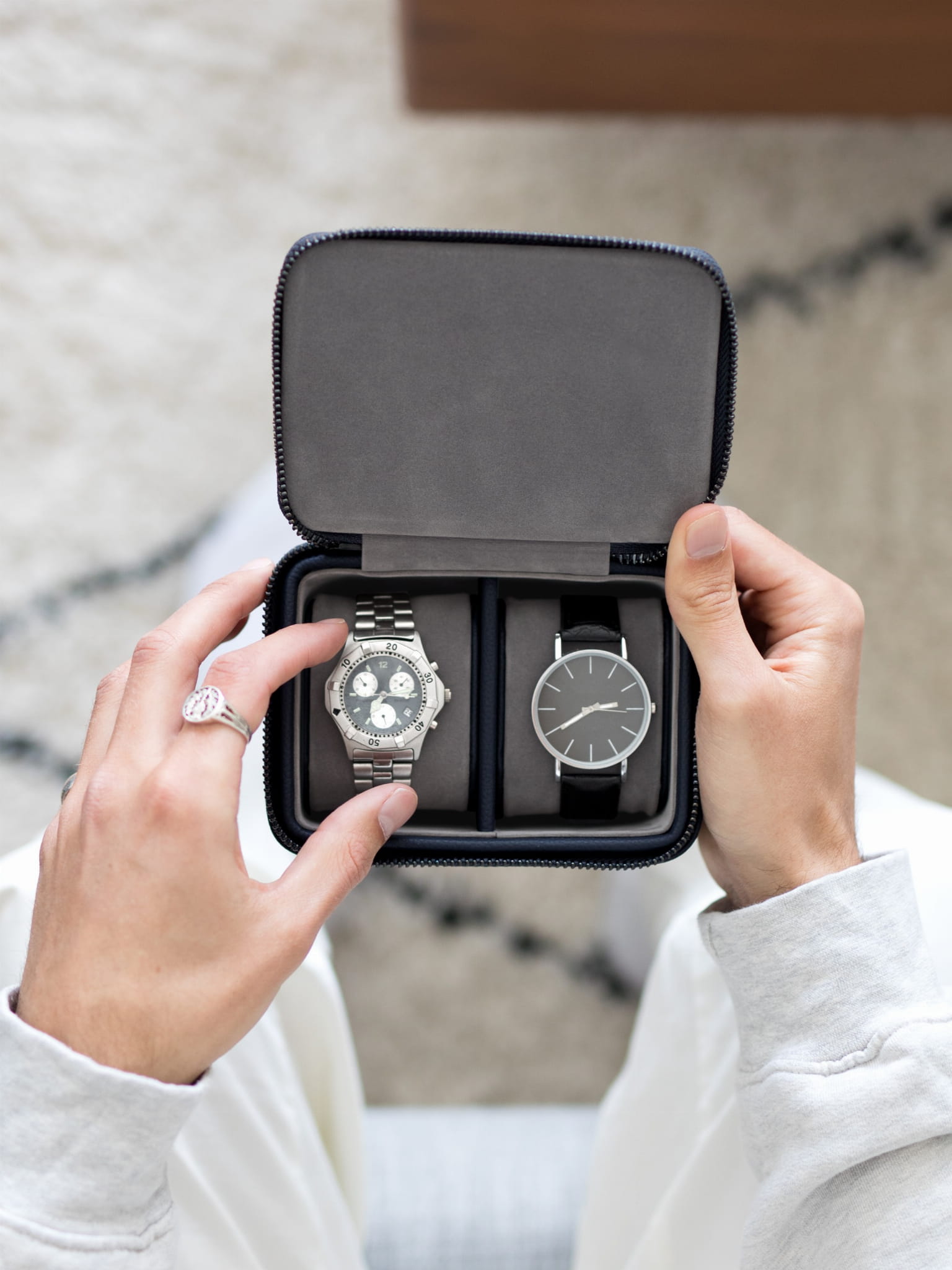 Podwójne etui podróżne na dwa zegarki granatowe
