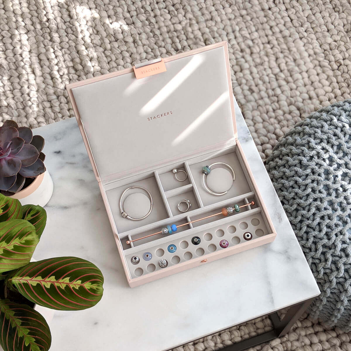 Pudełko na charmsy Stackers zostało zaprojektowane w taki sposób, aby móc stworzyć swoją własną kombinację, wybierając warstwy i akcesoria, które najlepiej pasują do Twojej kolekcji. Pudełko jest doskonałym punktem wyjścia dla każdego kolekcjonera charmsów. Użyj go jako samodzielnego pudełka na biżuterię lub dodaj do niego kolejne warstwy w rozmiarze Classic, aby stworzyć wyjątkową szkatułkę na całą kolekcję. Pudełko posiada dwie komory na bransoletki, długi stojak na charmsy oraz dodatkowe miejsce do przechowywania wszystkich ozdób.Twoje dodatkowe charmsy są bezpieczne i pięknie zorganizowane!
