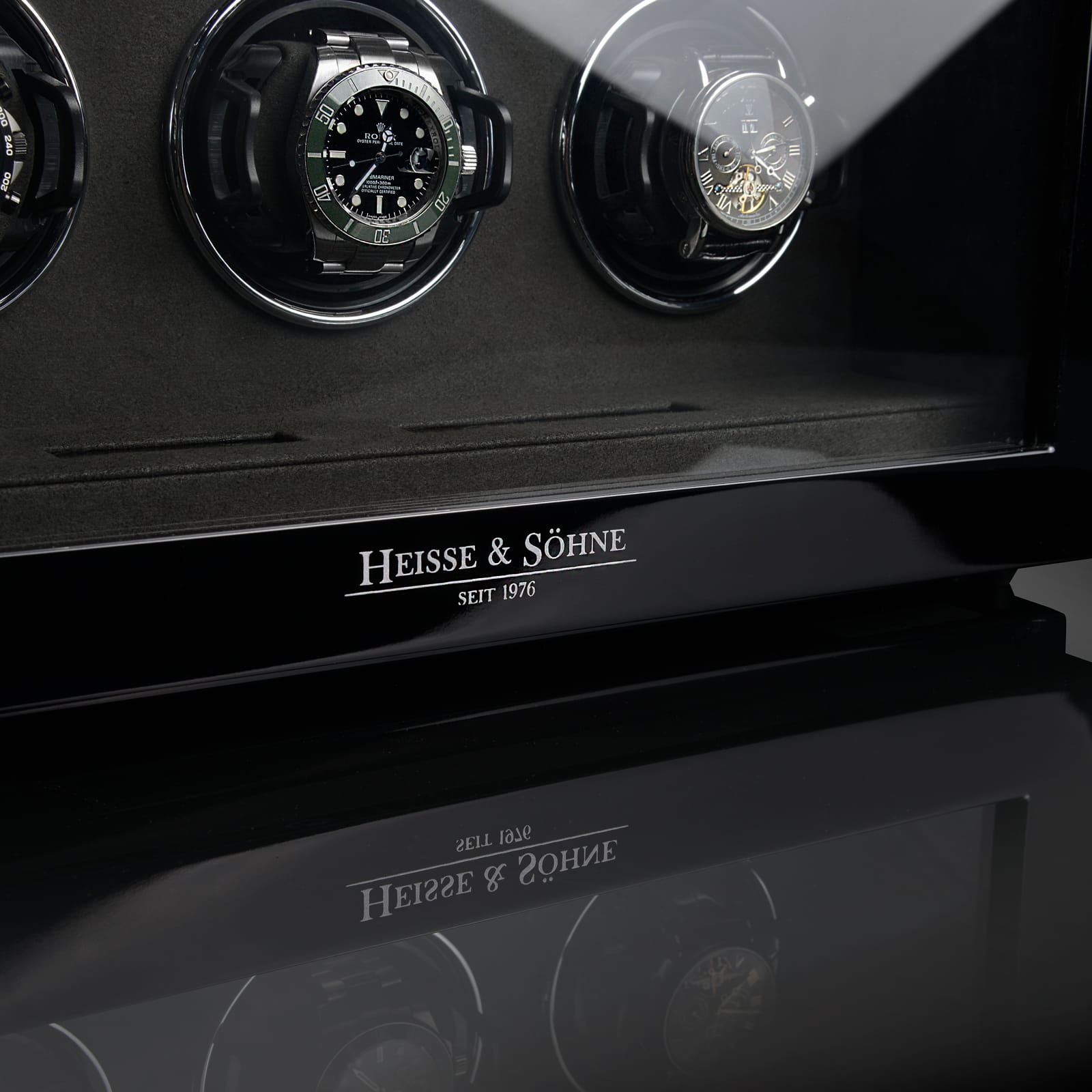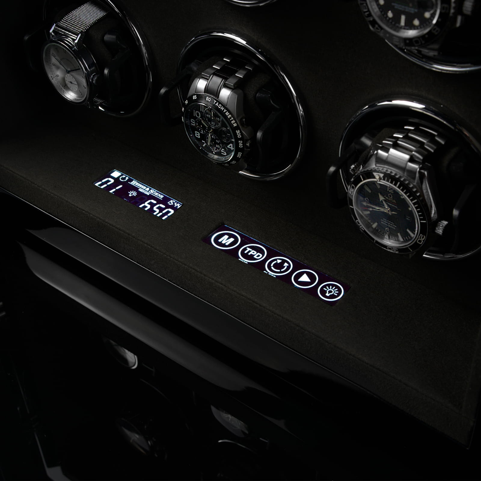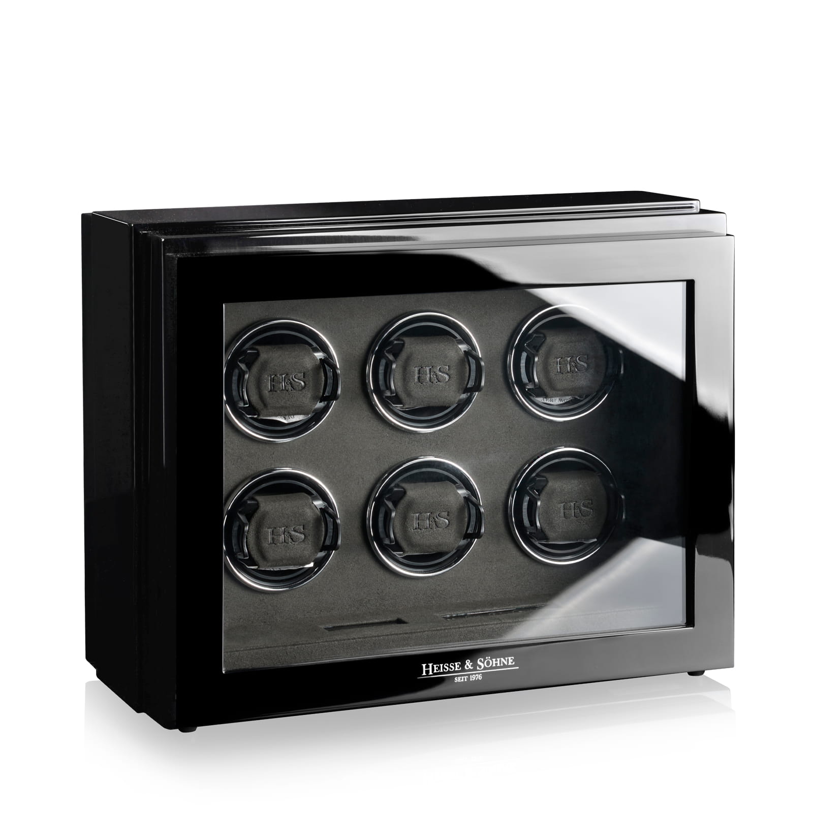 Rotomat Watch Master 6 marki Heisse & Söhne to połączenie precyzyjnego rzemiosła i nowoczesnej technologii, stworzone z myślą o pielęgnacji oraz bezpiecznym przechowywaniu zegarków automatycznych. Elegancka konstrukcja z drewna dostępna jest w dwóch wariantach wykończenia: klasycznym czarnym lakierze o wysokim połysku oraz dynamicznym zestawieniu czerni z efektowną strukturą carbonu.