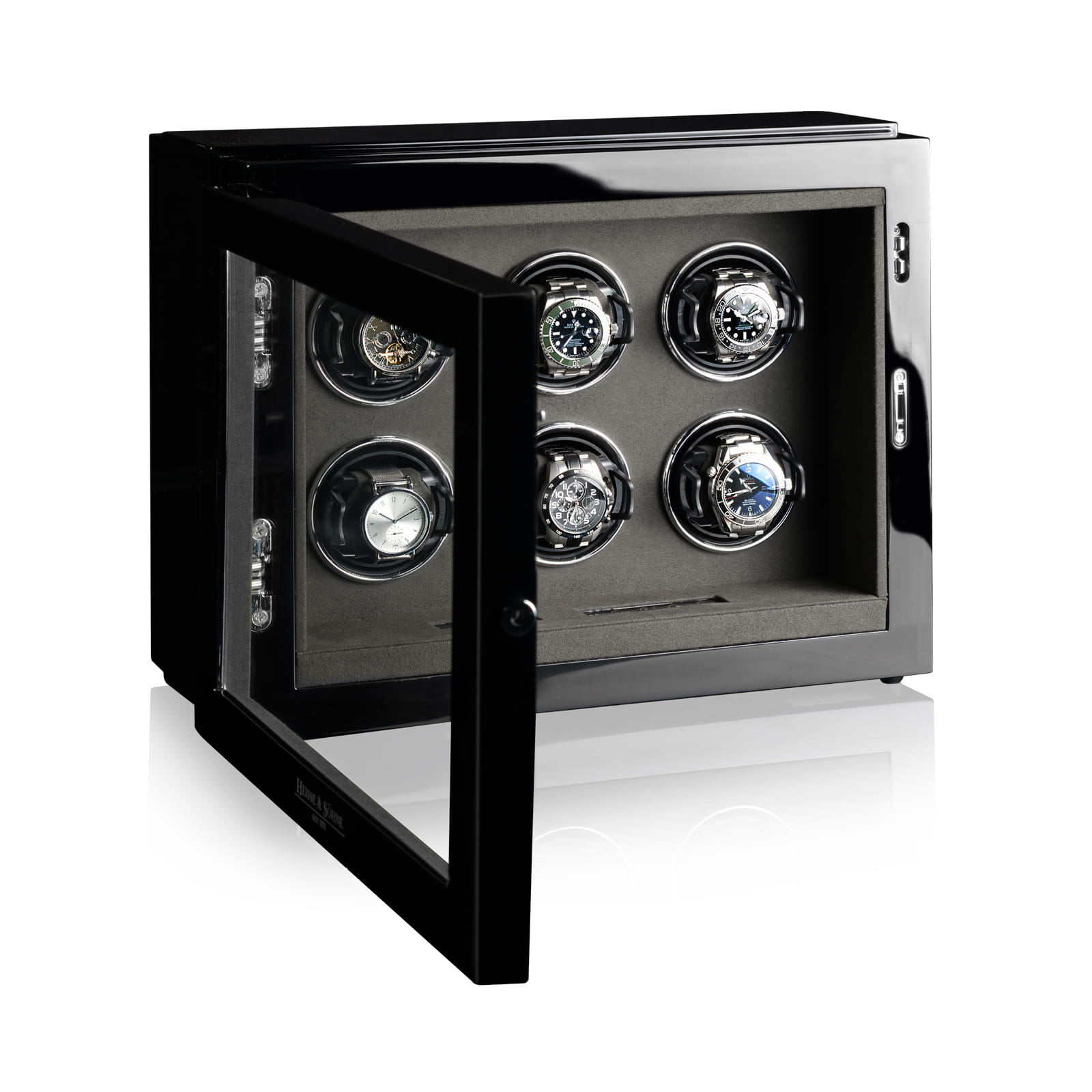 Urządzenie przeznaczone jest do jednoczesnego nakręcania aż sześciu zegarków automatycznych, dzięki czemu doskonale sprawdzi się zarówno w mniejszych, jak i bardziej rozbudowanych kolekcjach. Zamykane na klucz drzwiczki z przeszklonym frontem zapewniają ochronę, jednocześnie umożliwiając efektowną ekspozycję zegarków.