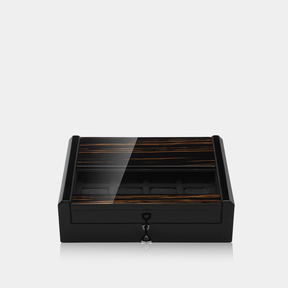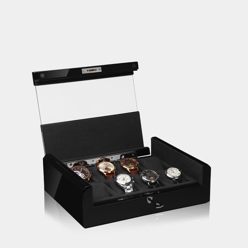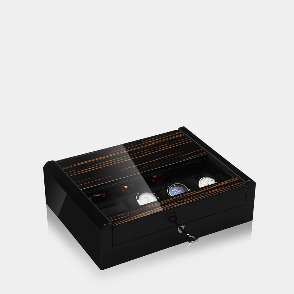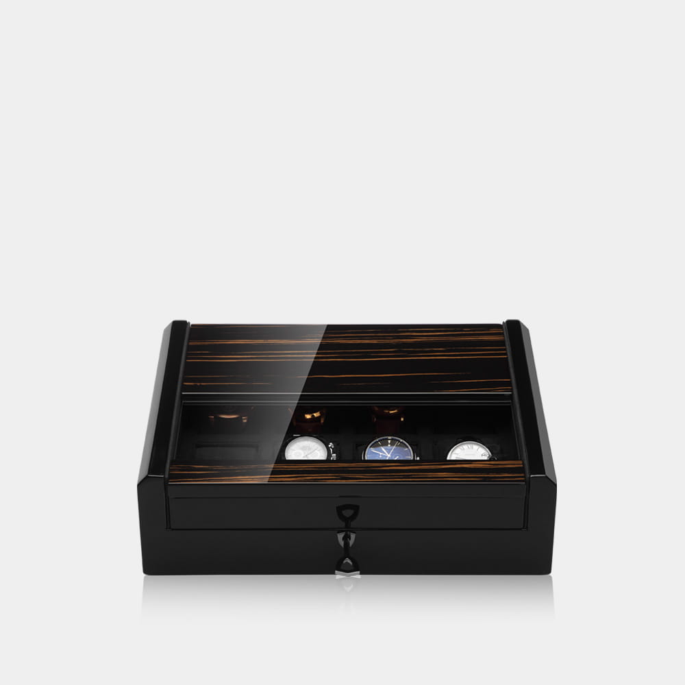 Dwa szlachetne warianty, ozdobione prawdziwym włóknem węglowym lub czarnym makassarem, mieszczące do 8 zegarków, stanowią idealne uzupełnienie Twojej kolekcji zegarków i gwarantują stylowe i bezpieczne przechowywanie zegarków na wysokim poziomie.