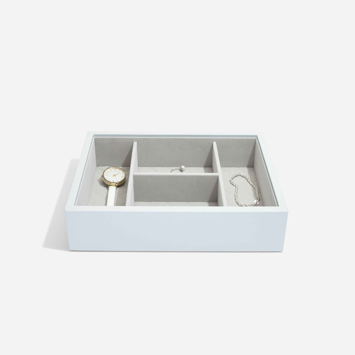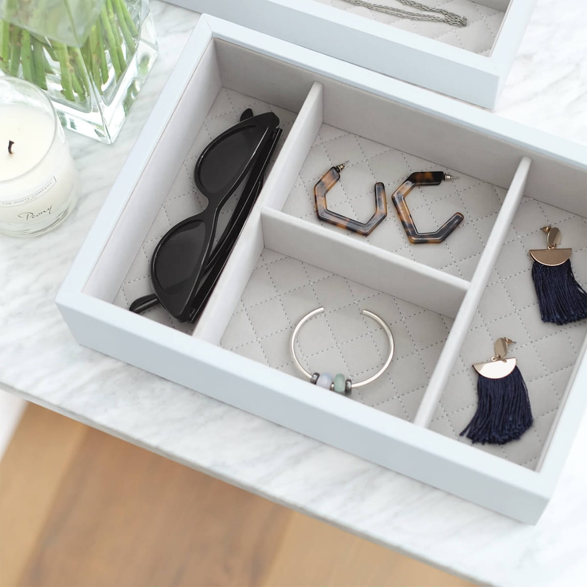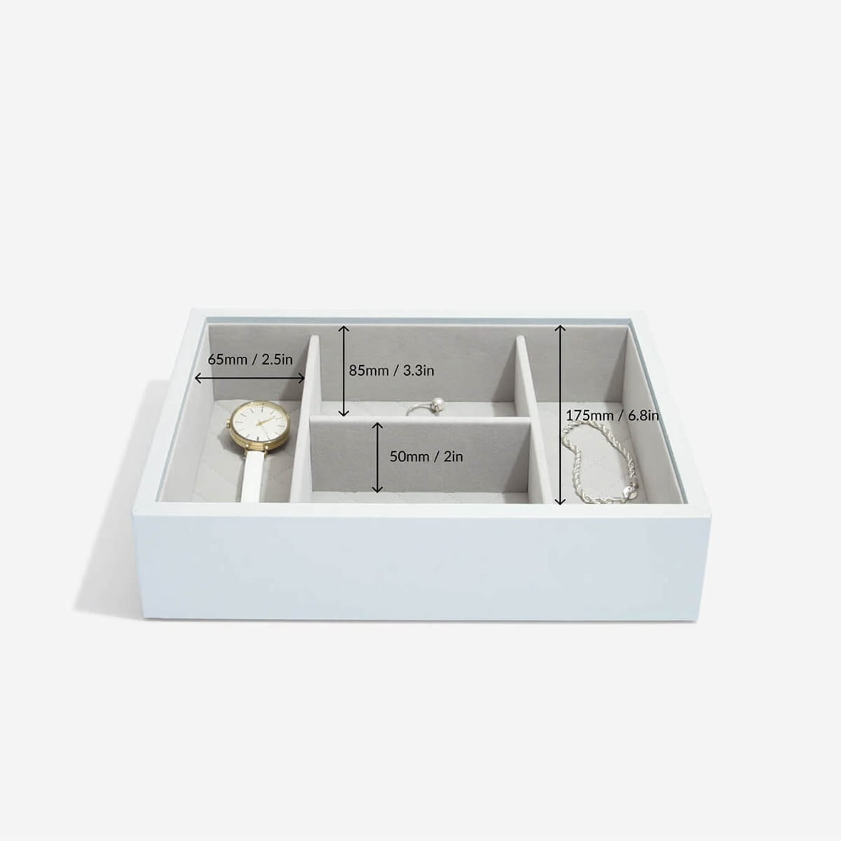 Kolekcja z luksusowej skóry licowej w połączeniu z rewolucyjną koncepcją tworzenia własnych kombinacji szkatułek daje Twojej pięknej biżuterii dom, na który zasługuje. Starannie wykonana z miękkiej skóry najwyższej jakości, jest z pewnością mile widzianym dodatkiem do Twojej skórzanej szkatułki na biżuterię z pokrywką. Szkatułka na biżuterię Loves Luxury to idealne miejsce na większe elementy biżuterii, takie jak bransoletki i zegarki. Dzięki miękkiej, aksamitnej wyściółce biżuteria jest łatwo dostępna i dobrze uporządkowana. Pudełka na biżuterię Stackers zostały zaprojektowane w taki sposób, abyś mogła stworzyć swoją własną kombinację, wybierając warstwy i akcesoria, które najlepiej pasują do Twojej kolekcji.