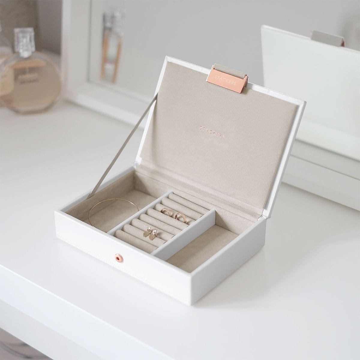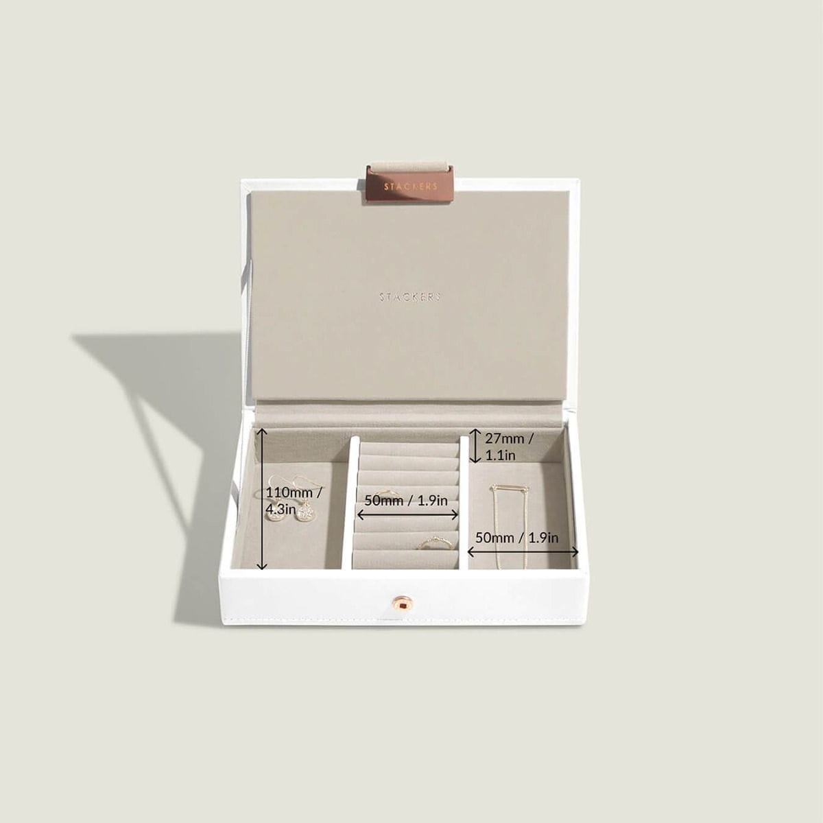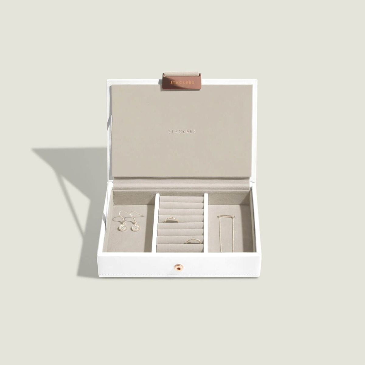 Szkatułka na biżuterię Stackers mini biało-beżowa z pokrywką miedziane zapięcie