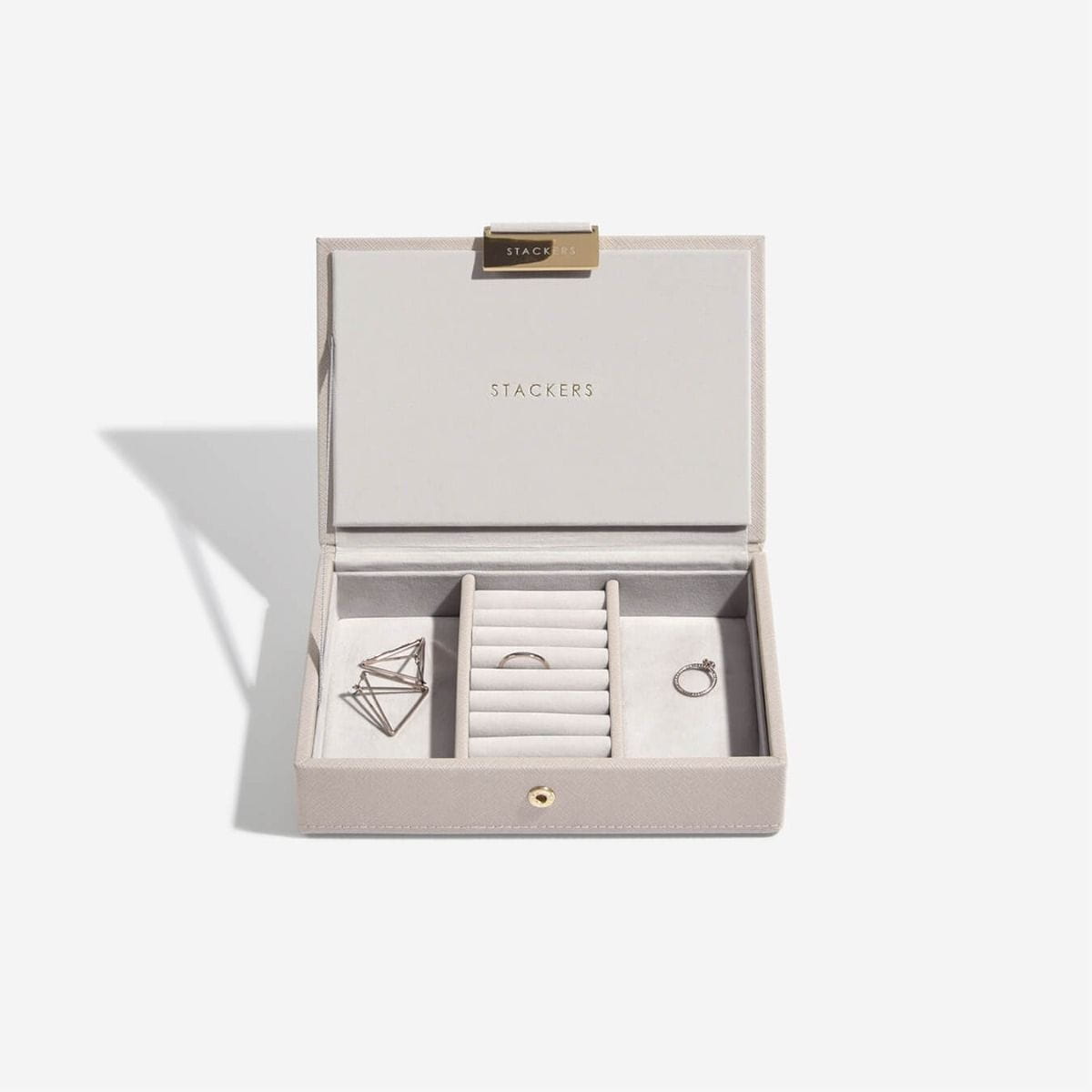 Szkatułka Stackers Mini jest idealnym miejscem na pierścionki, kolczyki i naszyjniki. Twoja stale powiększająca się kolekcja biżuterii będzie zawsze uporządkowana. Mini szkatułka na biżuterię z przykrywką jest idealna dla osób, które dopiero rozpoczynają swoją przygodę z kolekcjonowaniem ozdób. Sprawdzi się jako samodzielne pudełko, a gdy Twoja kolekcja będzie się powiększać, możesz po prostu dodać kolejną warstwę.