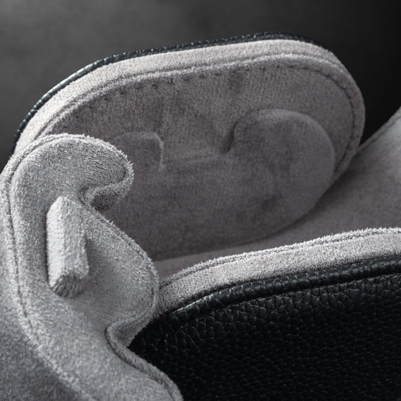 Etui wyposażono w innowacyjny uchwyt poduszkowy, który stabilnie utrzymuje zegarki na miejscu. Elastyczne, miękkie poduszki dopasowują się do kształtu i rozmiaru kopert, zapobiegając ich przesuwaniu się – nawet podczas podróży.