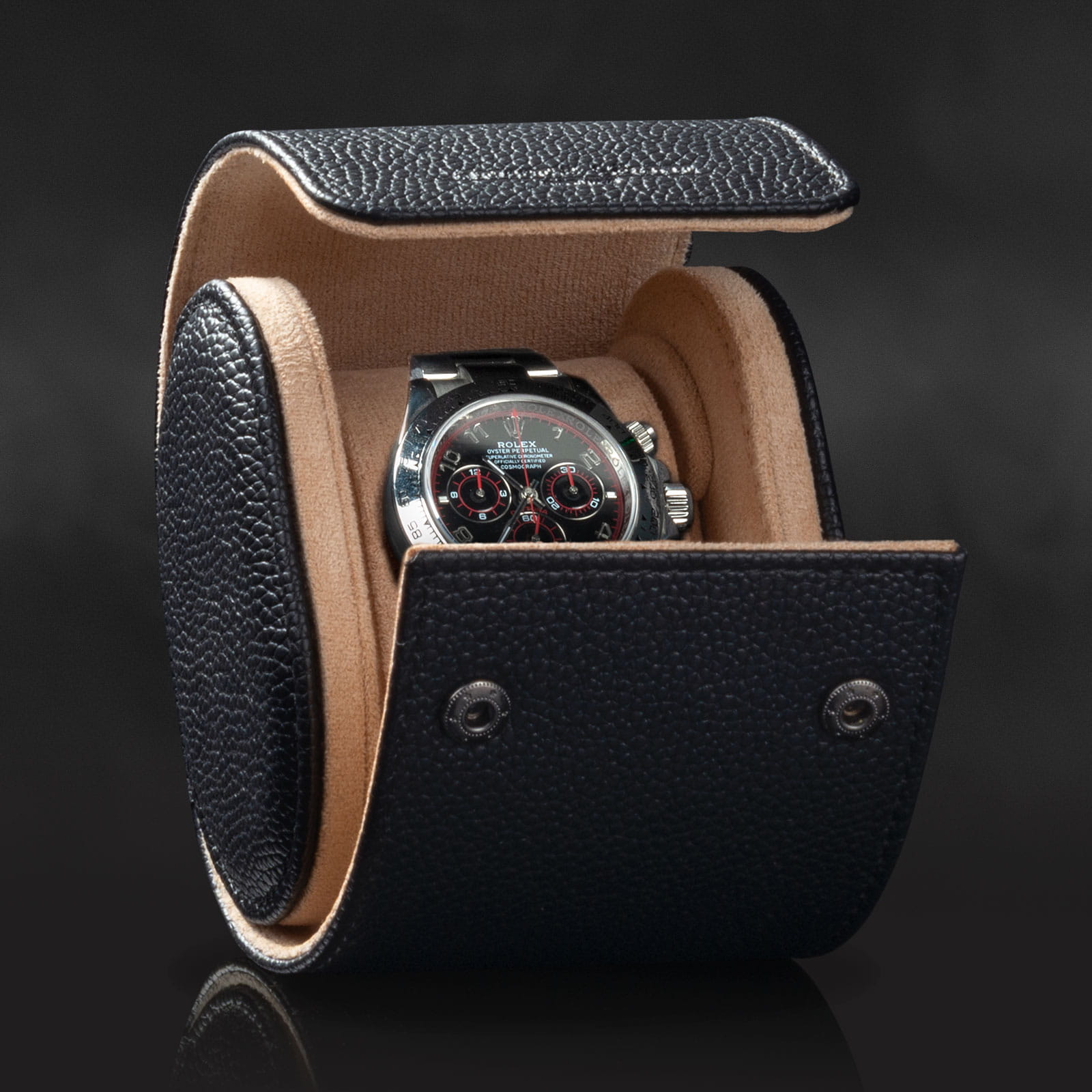 Etui wyposażono w innowacyjny uchwyt poduszkowy, który stabilnie utrzymuje zegarki na miejscu. Elastyczne, miękkie poduszki dopasowują się do kształtu i rozmiaru kopert, zapobiegając ich przesuwaniu się – nawet podczas podróży.