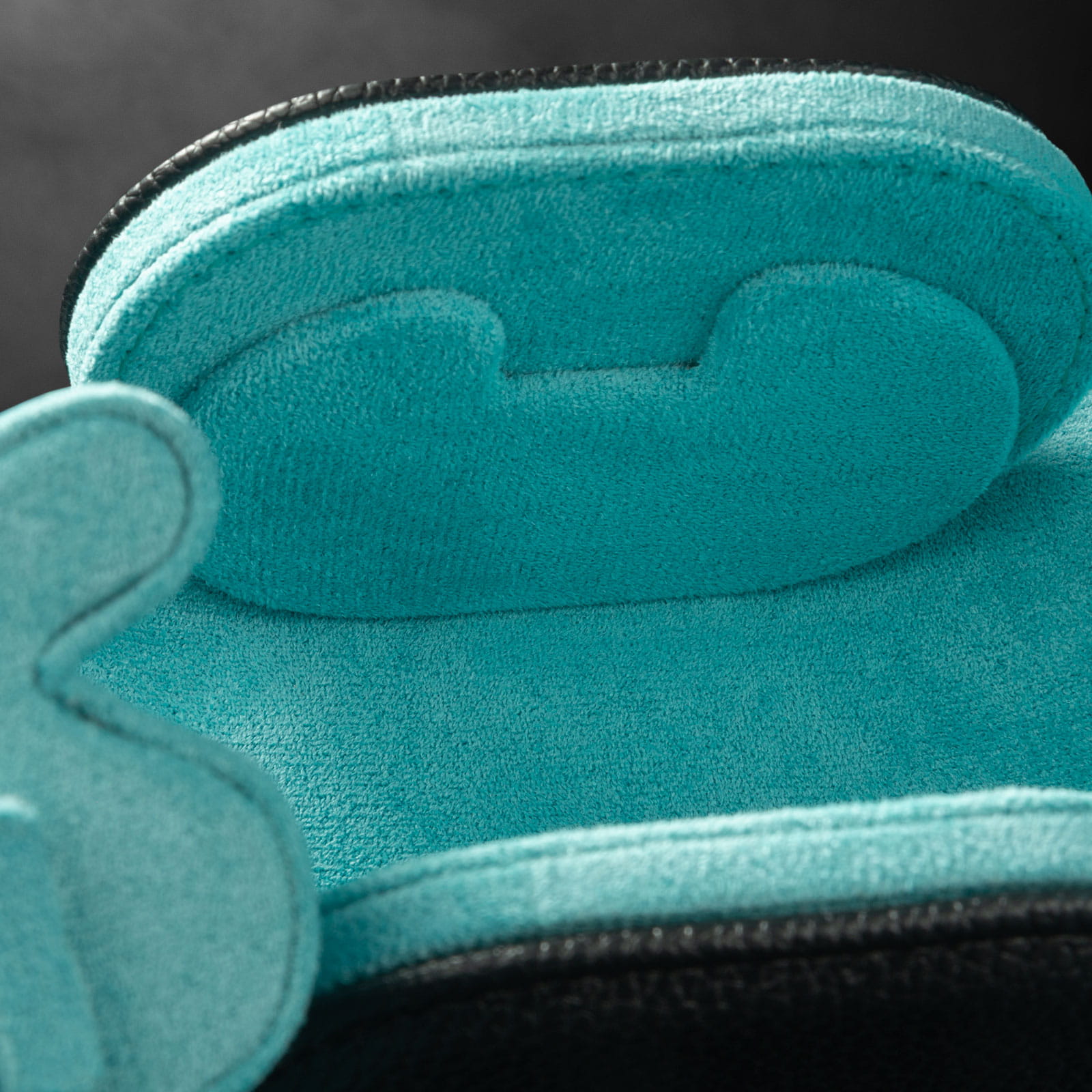 Etui wyposażono w innowacyjny uchwyt poduszkowy, który stabilnie utrzymuje zegarki na miejscu. Elastyczne, miękkie poduszki dopasowują się do kształtu i rozmiaru kopert, zapobiegając ich przesuwaniu się – nawet podczas podróży.