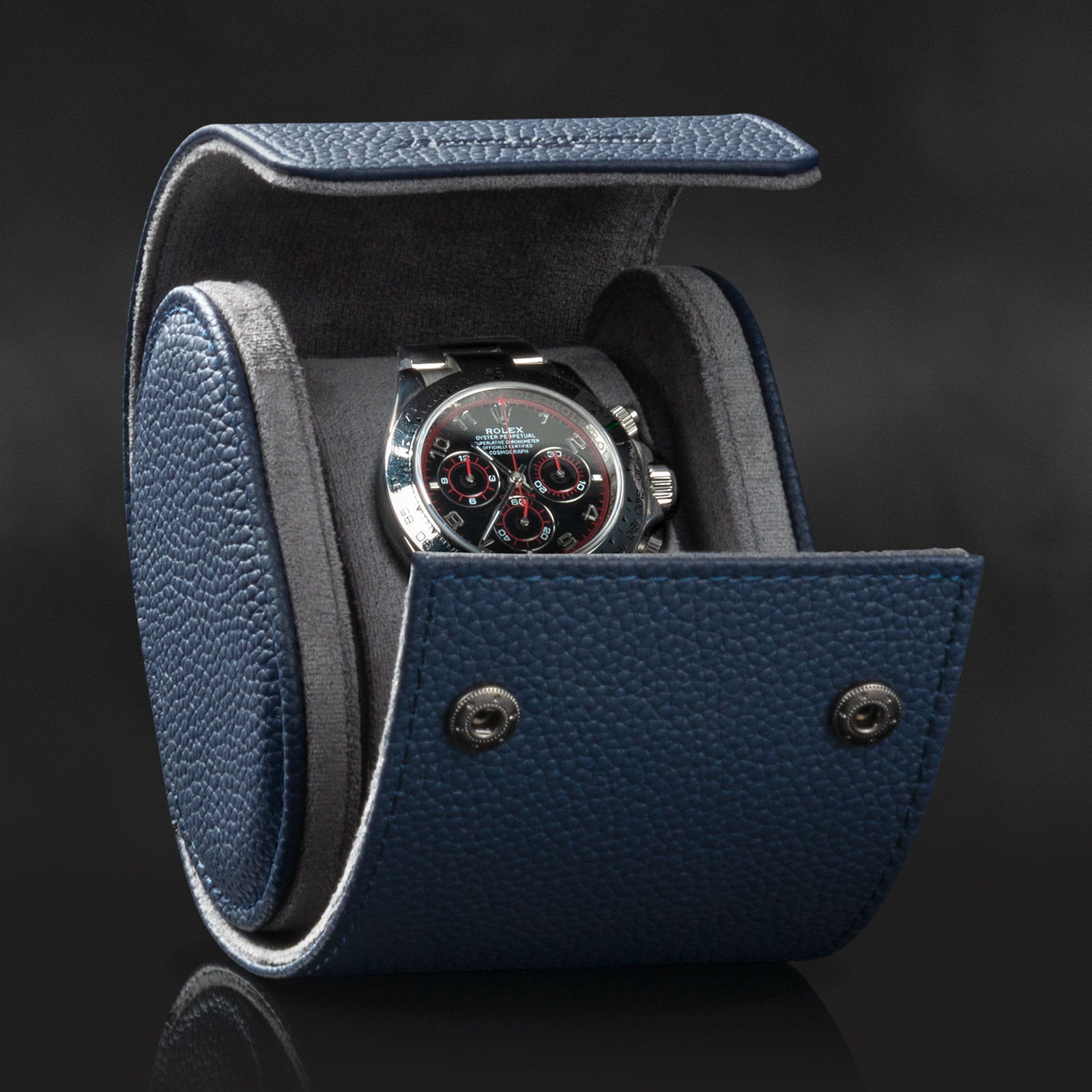 Etui wyposażono w innowacyjny uchwyt poduszkowy, który stabilnie utrzymuje zegarki na miejscu. Elastyczne, miękkie poduszki dopasowują się do kształtu i rozmiaru kopert, zapobiegając ich przesuwaniu się – nawet podczas podróży.