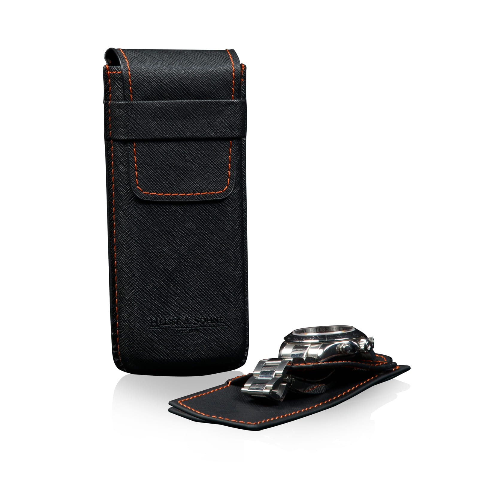 Etui podróżne na zegarek HEISSE & SÖHNE Mondo Saffiano Black & Orange