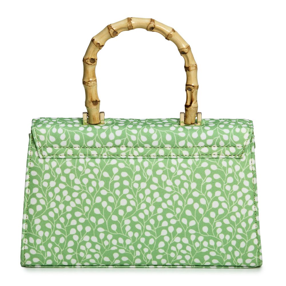 - Materiały: Zewnętrzne: drukowany poliester, bambus, metalowe elementy ze złotym wykończeniem, skóra wegańska. Wnętrze: podszewka bawełniana