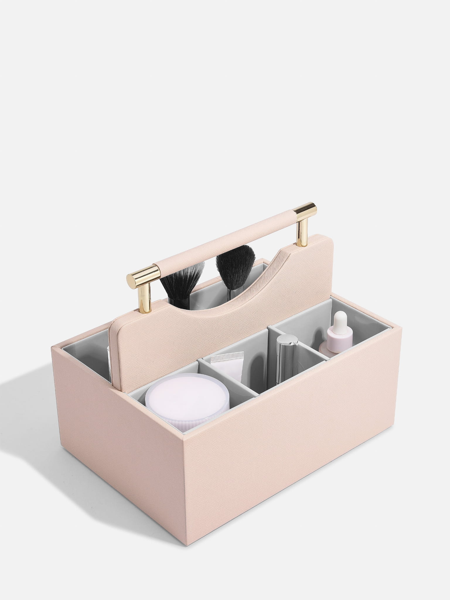 Klasyczny organizer na kosmetyki to idealne rozwiązanie do codziennego przechowywania kosmetyków. Zapewnia elegancką organizację produktów do pielęgnacji skóry, makijażu i perfum. Dzięki łatwemu dostępowi do wszystkich niezbędnych przedmiotów, świetnie sprawdzi się na toaletce lub w łazience. Wnętrze organizera jest łatwe do czyszczenia, a uchwyt do przenoszenia umożliwia swobodne przemieszczanie się z pokoju do pokoju. Wyjmowane przegrody pozwalają na tworzenie sekcji, dostosowanych do Twojej kolekcji kosmetyków o różnych rozmiarach.