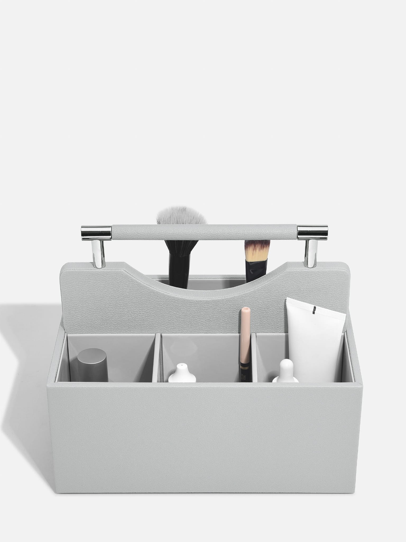 Klasyczny organizer na kosmetyki to idealne rozwiązanie do codziennego przechowywania kosmetyków. Zapewnia elegancką organizację produktów do pielęgnacji skóry, makijażu i perfum. Dzięki łatwemu dostępowi do wszystkich niezbędnych przedmiotów, świetnie sprawdzi się na toaletce lub w łazience. Wnętrze organizera jest łatwe do czyszczenia, a uchwyt do przenoszenia umożliwia swobodne przemieszczanie się z pokoju do pokoju. Wyjmowane przegrody pozwalają na tworzenie sekcji, dostosowanych do Twojej kolekcji kosmetyków o różnych rozmiarach.