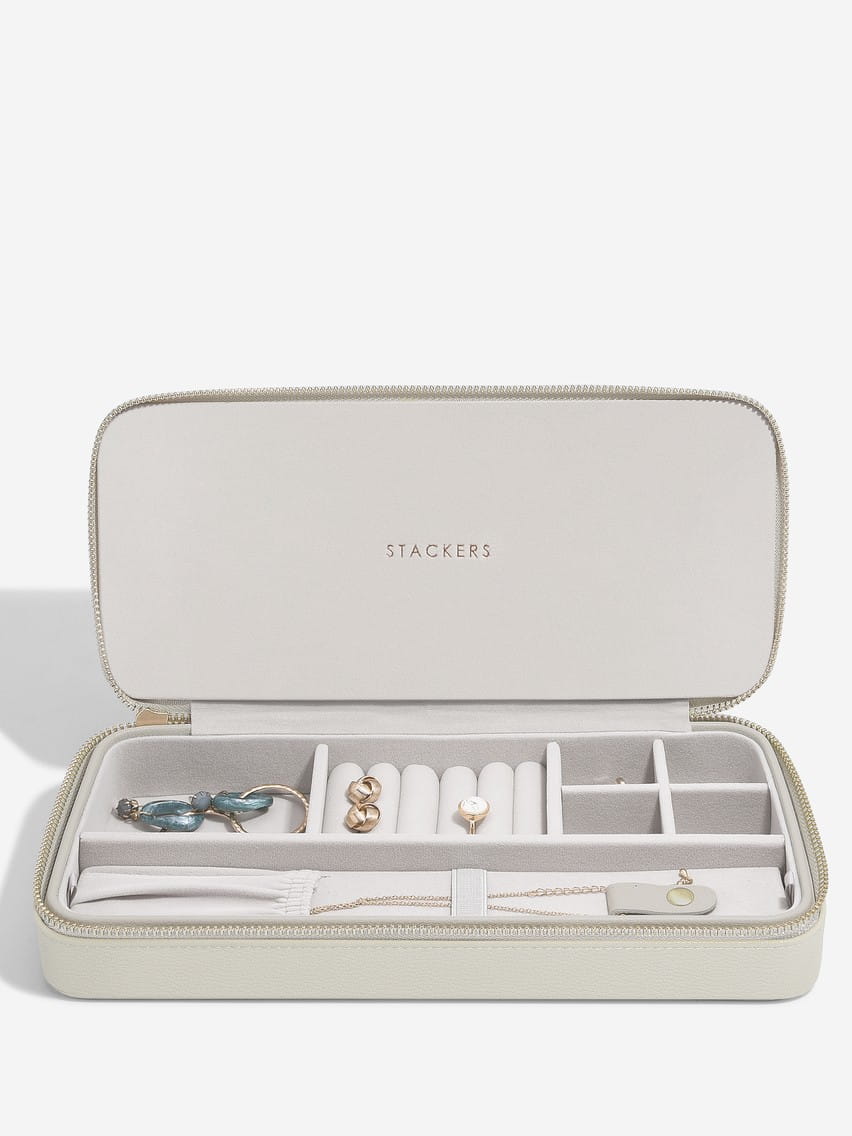 Podnieś komfort swoich podróży i zapewnij sobie porządek dzięki eleganckiemu pudełku na biżuterię Stackers, które idealnie zabezpieczy Twoje naszyjniki i inne cenne akcesoria.