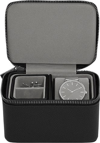 Pudełko na zegarek i spinki do mankietów zostało zaprojektowane do bezpiecznego przechowywania pierścionków, spinek do mankietów i zegarka. Z dwiema sekcjami do ochrony biżuterii i akcesoriów. To świetny, przemyślany prezent dla drużbów.