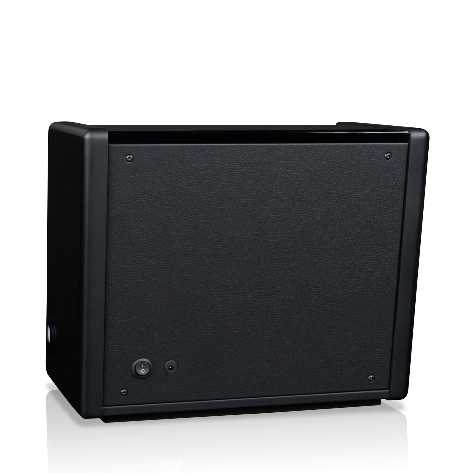 Obudowa o charakterystycznym trapezowym kształcie, wykonana z drewna i MDF-u, przyciąga uwagę swoim nowoczesnym wzornictwem. Wysokopołyskowe lub fornirowane powierzchnie uzupełniono o matowe, czarne boczne panele, które nadają konstrukcji elegancji i stabilności. Przeszklony front z czarnego, anodowanego aluminium otwierany jest ku dołowi, co nadaje całości lekkości i zapewnia pełną ochronę przed kurzem i nieautoryzowanym dostępem. Dostęp do wnętrza możliwy jest dzięki zabezpieczeniu biometrycznemu H&S Fin-Protect – elektronicznemu zamkowi z czytnikiem linii papilarnych.