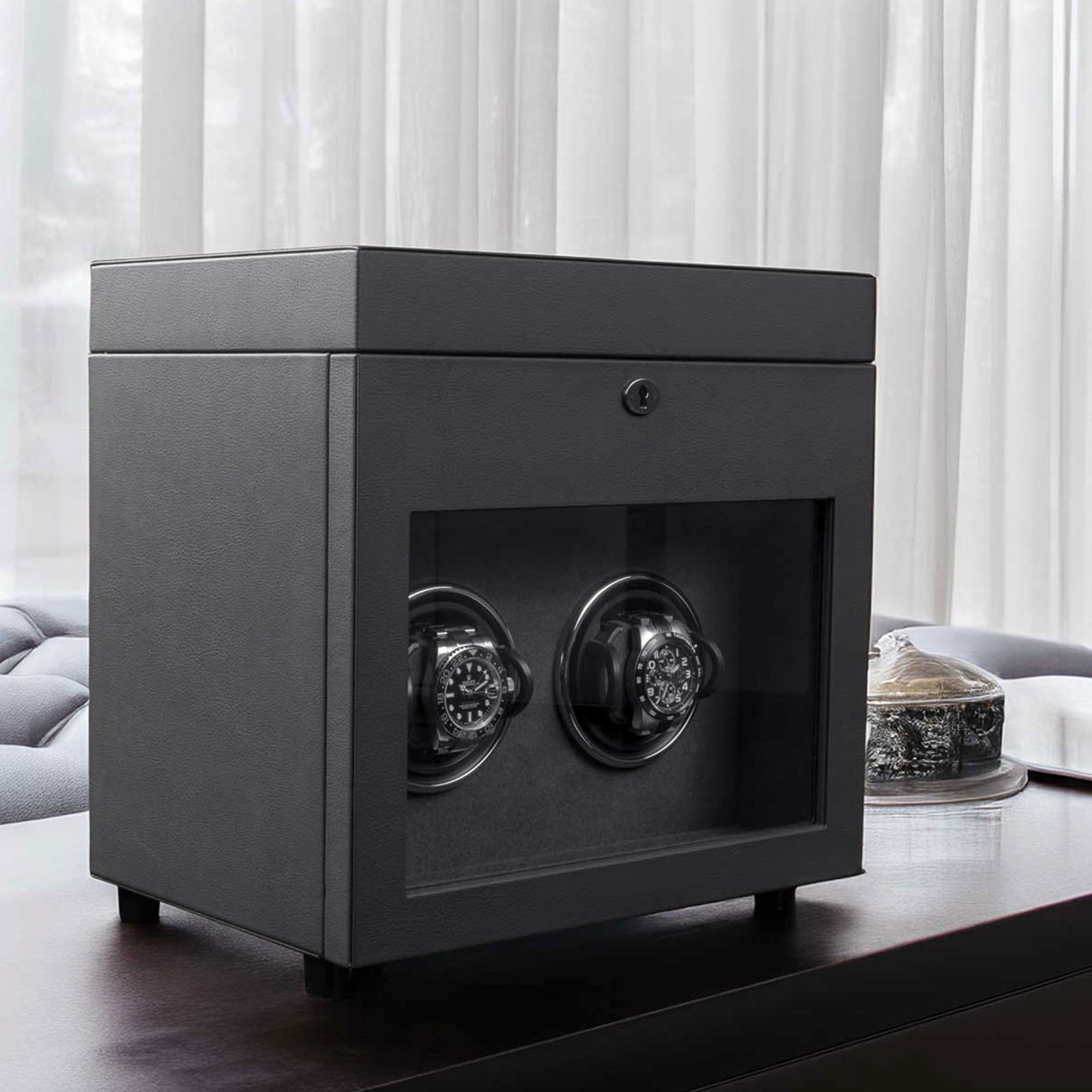 Zarówno część obrotowa, jak i przestrzeń do przechowywania są zamykane na klucz, co gwarantuje pełne bezpieczeństwo oraz ochronę przed kurzem i niepowołanym dostępem. Uchwyt H&S High-Flex pokryty miękkim welurem dopasowuje się do obwodu zegarka (14–22,5 cm), zapewniając bezpieczne przechowywanie modeli o różnych rozmiarach.