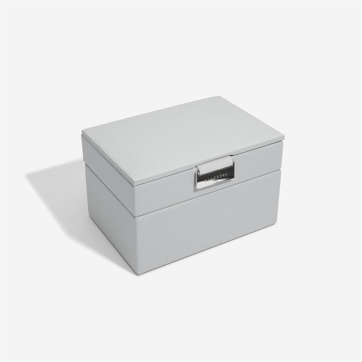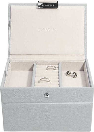 Mini szkatułka jest idealna dla osób rozpoczynających kolekcjonowanie biżuterii. Pokrywka pudełka na biżuterię pomieści pierścionki, kolczyki i naszyjniki, a warstwa na zegarki i akcesoria jest idealna do przechowywania wkładki z pierścionkami, poduszki na zegarek lub ozdobnych opakowań, które czasem lubimy zachować na pamiątkę. Przechowuj swoją stale powiększającą się kolekcję bez plątaniny i w doskonałym porządku. Zestaw mini obejmuje pokrywę pudełka na biżuterię oraz warstwę na zegarki lub akcesoria.