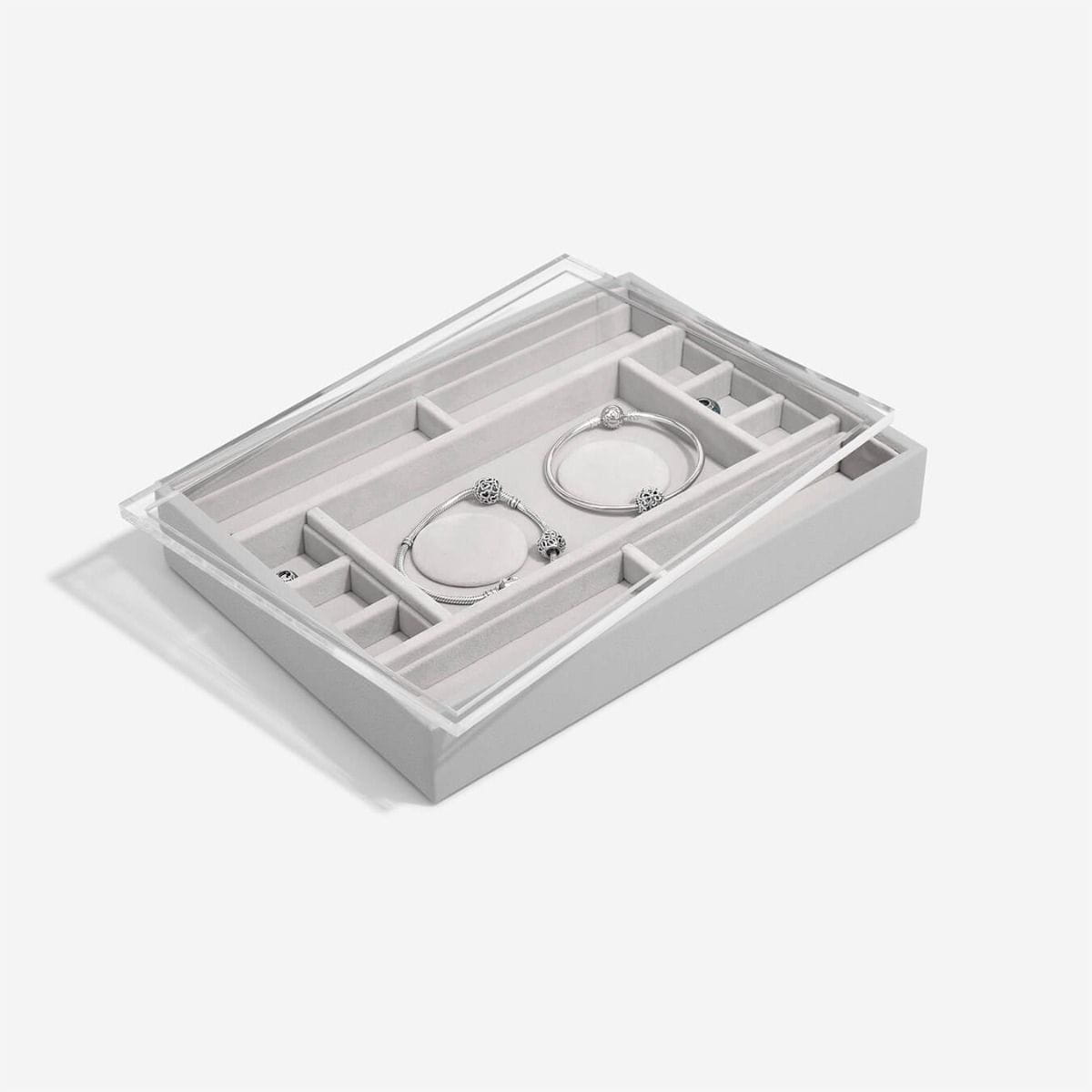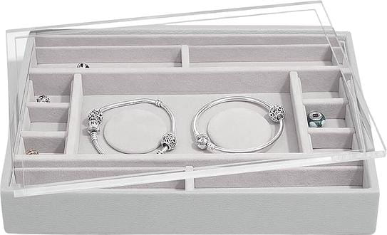 Pudełko na biżuterię Stackers zostało zaprojektowane tak, abyś mogła stworzyć swoje własne zestawienie, wybierając warstwy i akcesoria, które najlepiej pasują do Twojej wyjątkowej kolekcji. Szkatułka na bransoletki charms Stackers classic z pokrywką to jest wspaniały dodatek do Twojej kolekcji charmsów. Posiada przezroczystą akrylową pokrywę, aby Twoje koraliki były bezpieczne i widoczne. Zaprojektowane przez kolekcjonerów dla kolekcjonerów charmsów, posiada 2 wkładki na gotowe bransoletki, jak również wiele przegródek na dodatkowe charmsy. Boczne części zostały stworzone tak, aby pasowały do stojaków! Stwórz miejsce do przechowywania charmsów, które będzie pasowało do Ciebie i Twojej kolekcji!