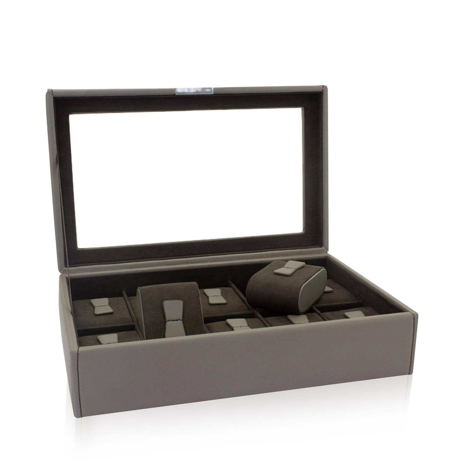 Odpowiedni kształt dla każdego! Elegancka wersja w kolorze ciemnobrązowym doskonale podkreśla każdy zegarek swoim prostym wyglądem. Etui na zegarek może pomieścić od 1 do 10 zegarków automatycznych i normalnych.