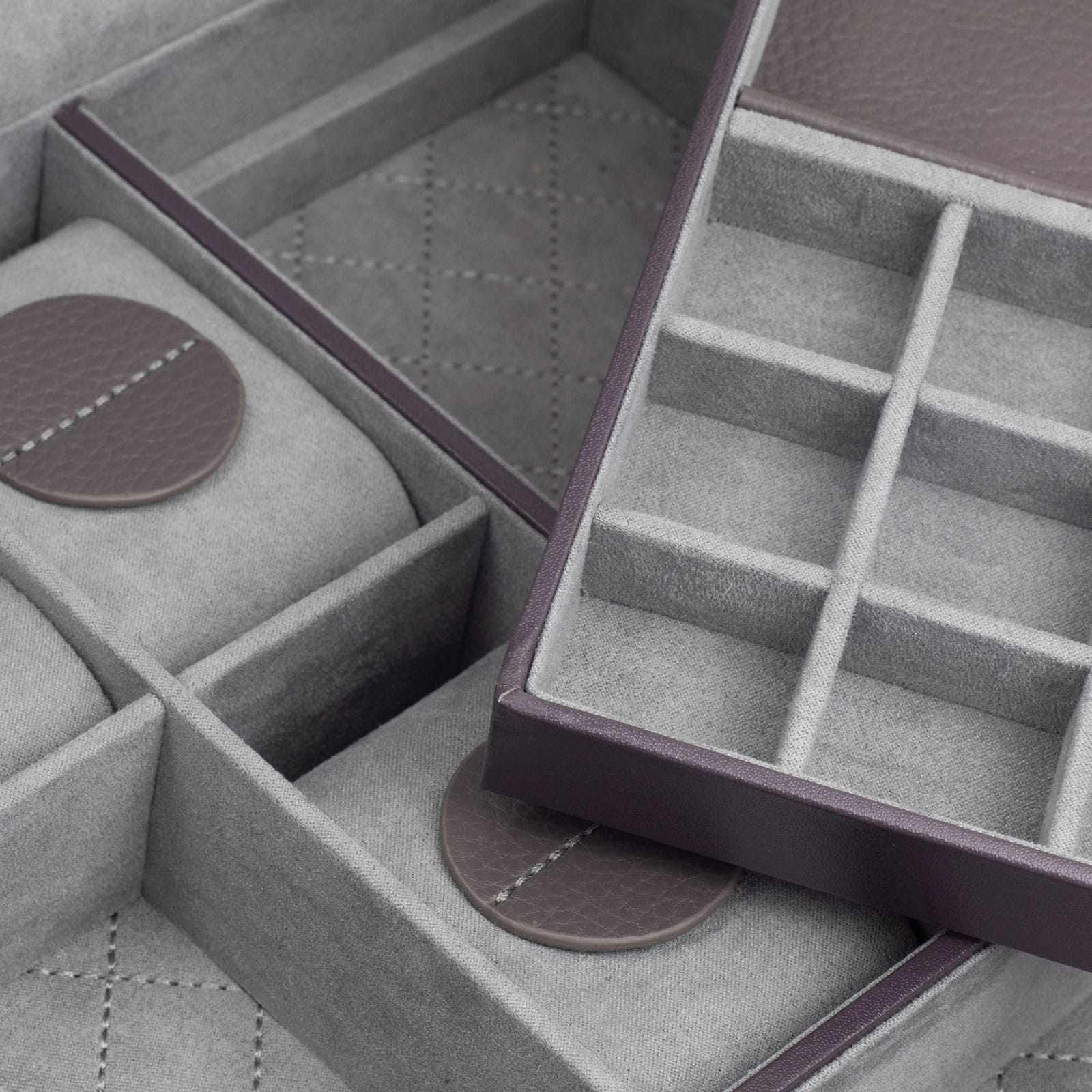 - Wyjmowana wkładka podzielona na dwie przegródki na pierścionki, spinki do mankietów i akcesoria