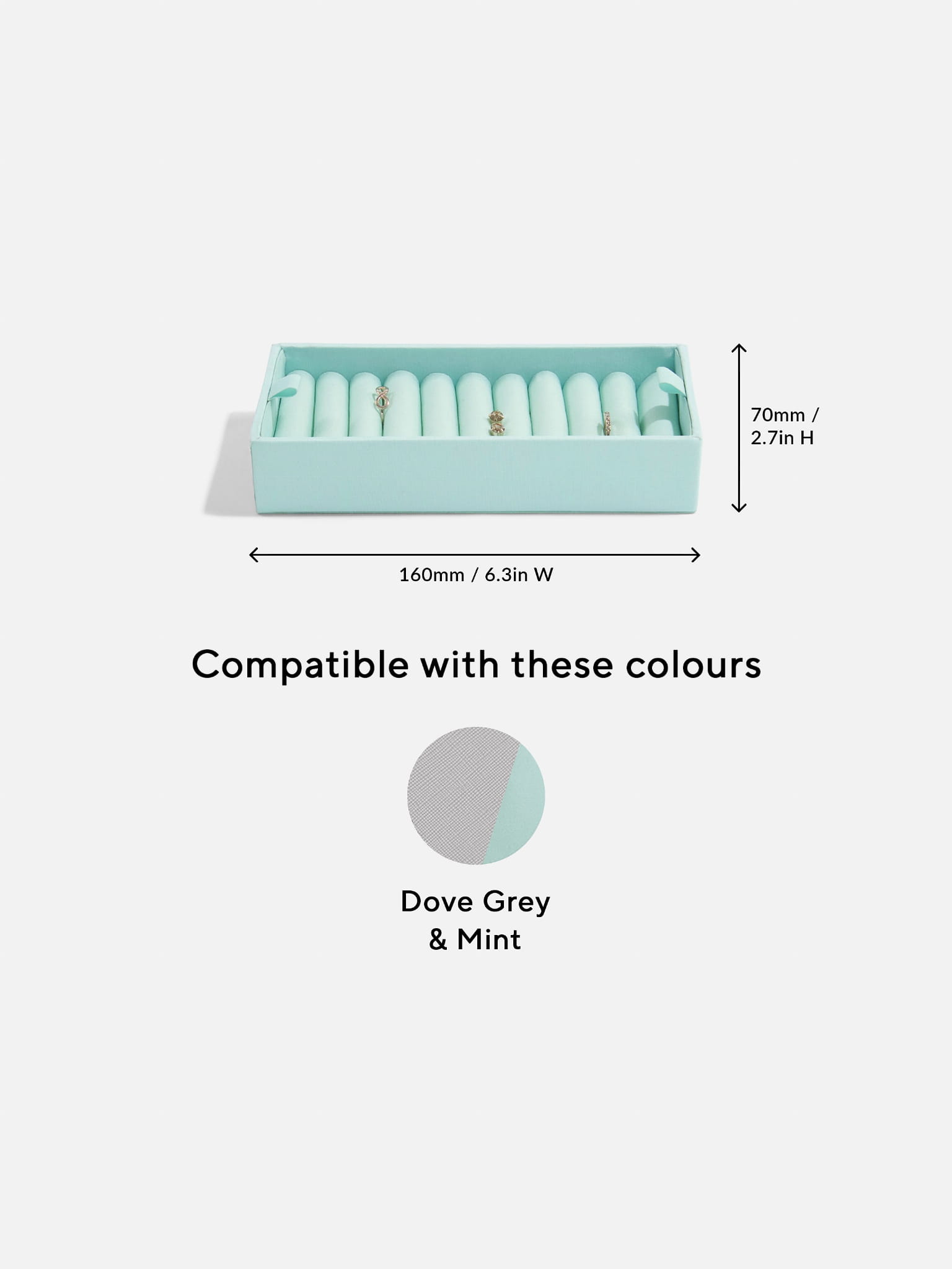 Potrzebujesz miejsca na swoje pierścionki lub dużych rozmiarów pierścionki? Nasza rolowana podkładka na pierścionki jest wyłożona miękkim aksamitem, co nie tylko pięknie je prezentuje, ale również zapewnia im bezpieczeństwo. Zaprojektowana z myślą o idealnym dopasowaniu do kolekcji zegarków i akcesoriów. Dodatkowa wskazówka: Rolka na pierścionki świetnie sprawdza się także jako praktyczny uchwyt na kolczyki w kształcie sztyftu!